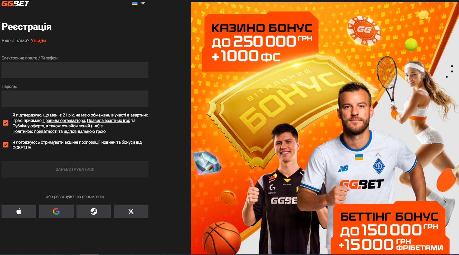 Реєстрація на GGBET UA: покрокова інструкція та нюанси