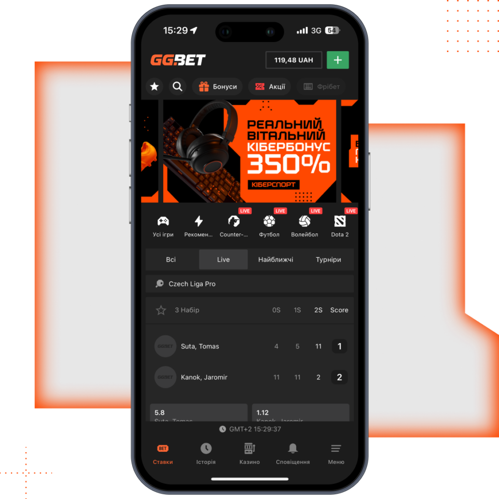Після встановлення GGBET додатка гравці можуть робити ставки на будь-які події, доступні в лінії. Алгоритм дій такий: